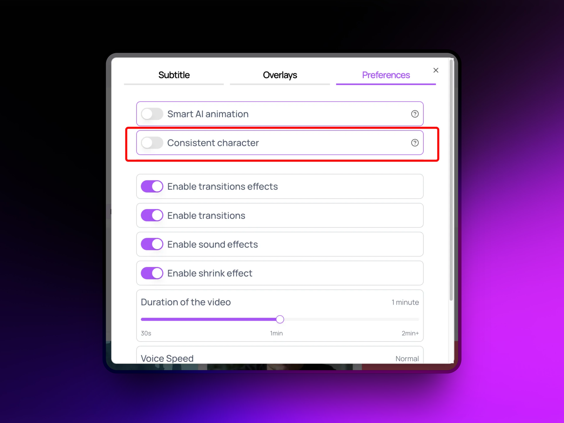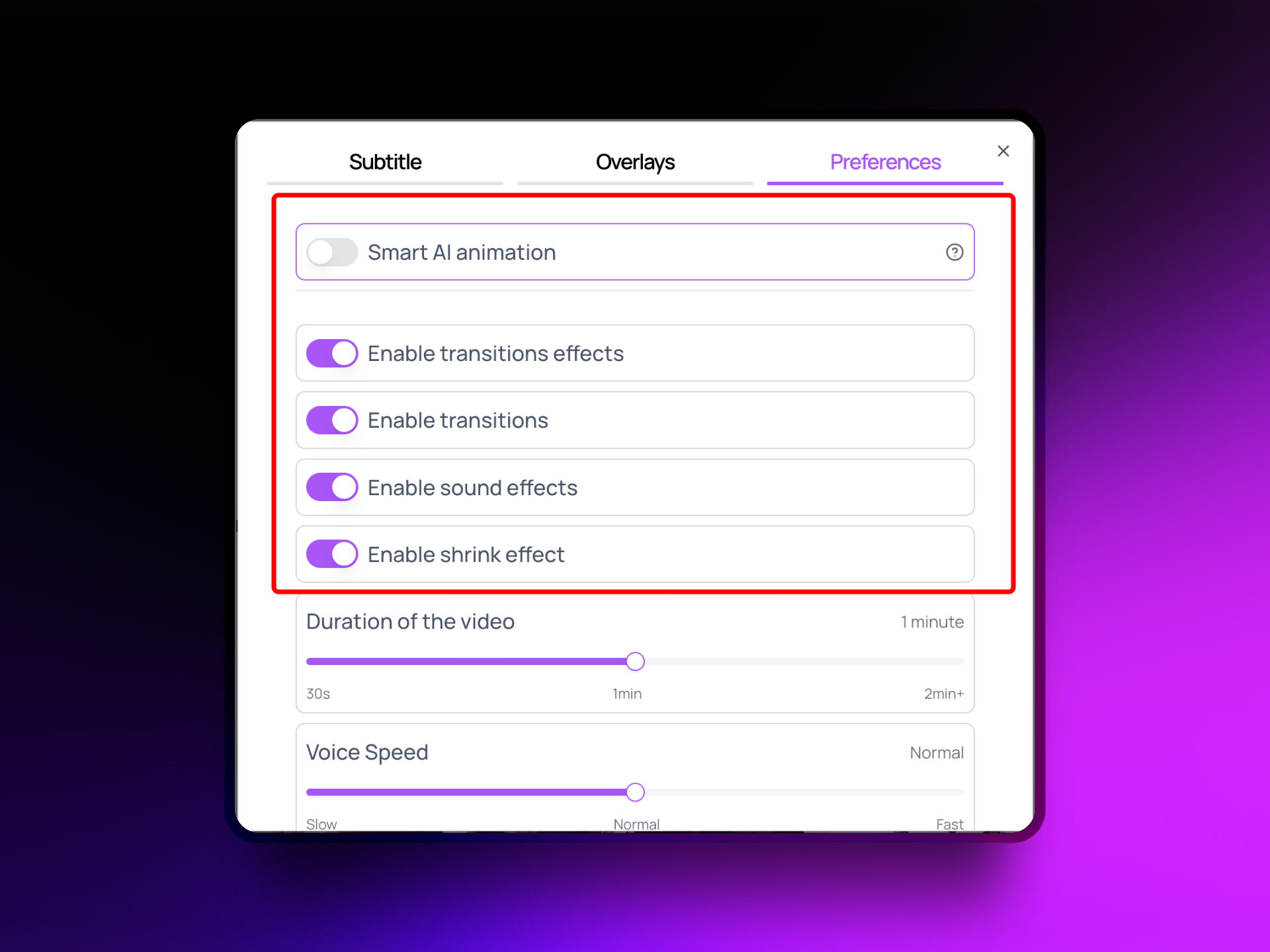 Transition & Shrink Settings: You can now disable all transitions and the Shrink effect, which were previously enabled by default in videos.