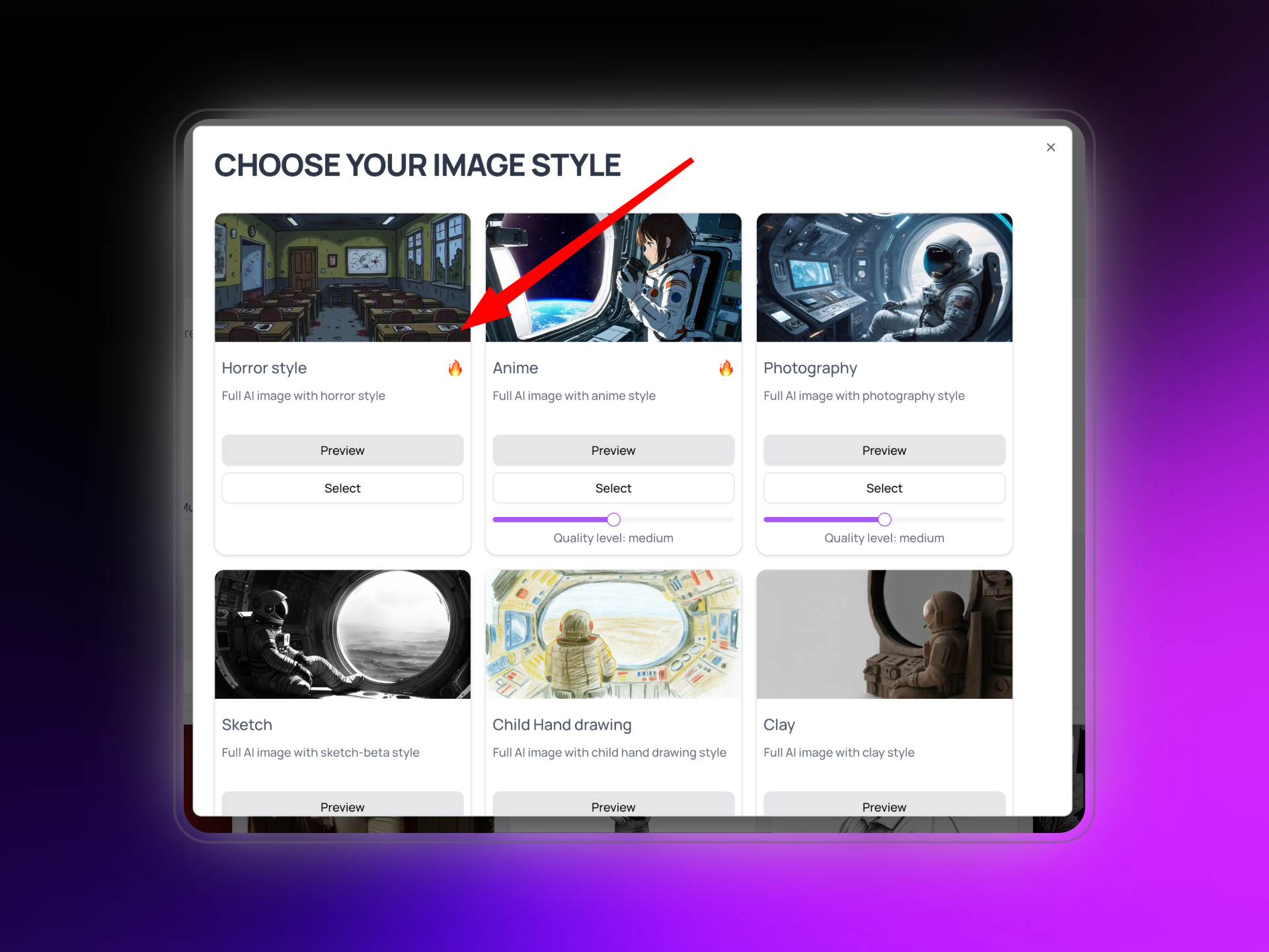 → Compatible with all image styles except “Horror style”.